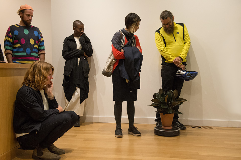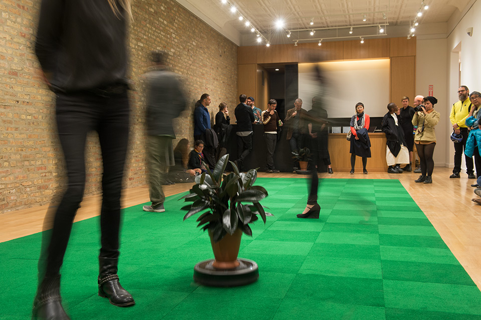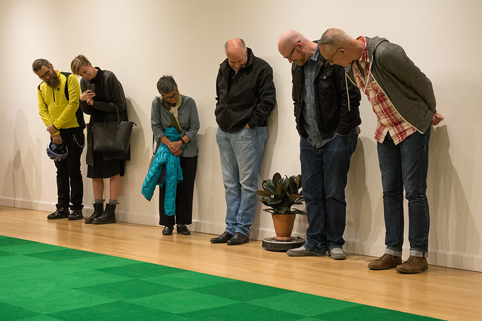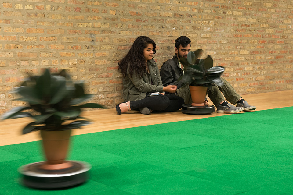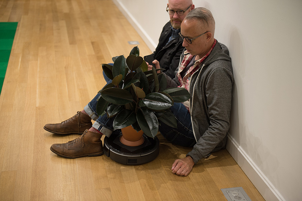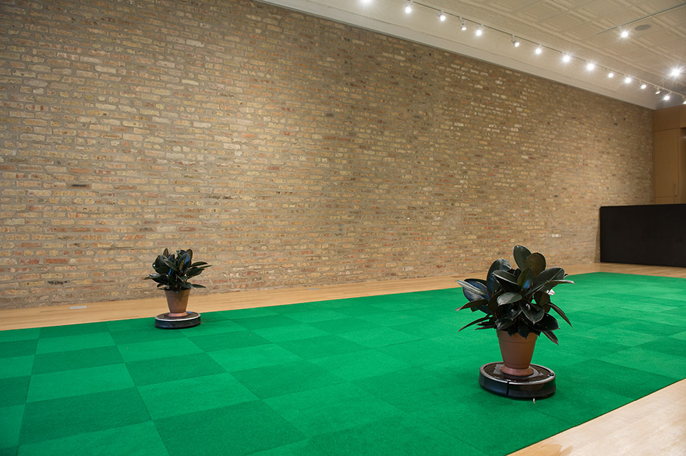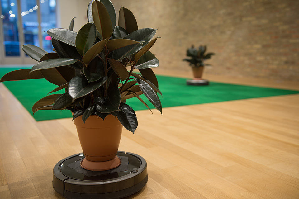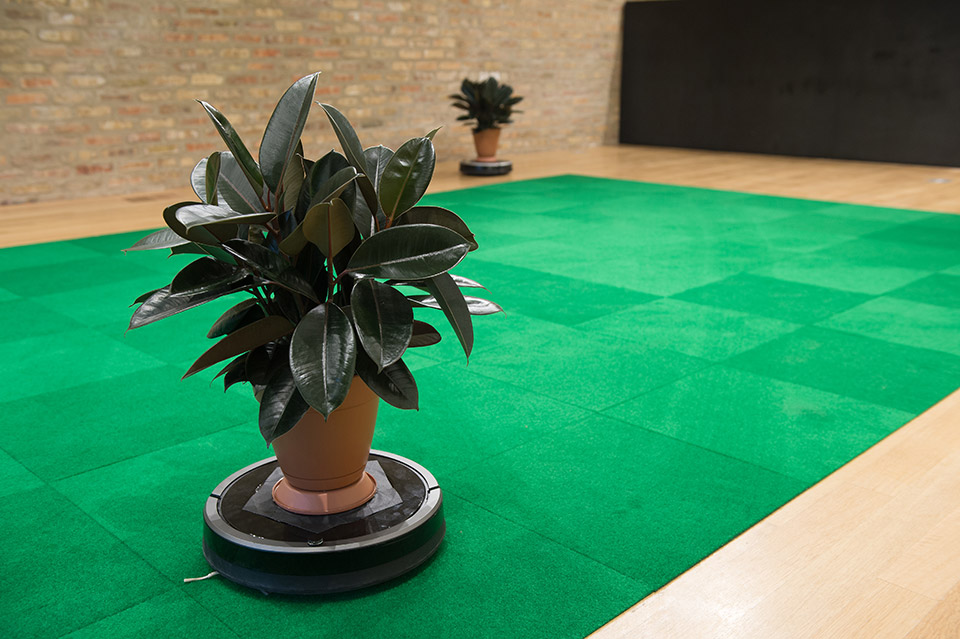 Media: Roombas, rubber tree plants, indoor/outdoor carpet tiles, sound.