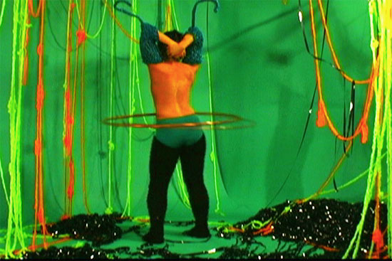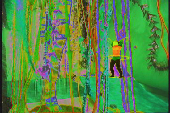 In an "infinite loop," a logical error causes a portion of a computer program to repeat itself endlessly, thereby preventing the program from running to completion. This DVD explores the "infinite loop" bug through five short video loops, each between 16 and 28 seconds. I use a hula hoop and VHS video tape to create a recursive and solipsistically silly system for five bug behaviors: (1) PERFORMING A MATING DANCE, (2) DEFECATION, (3) SPINNING A COCOON, (4) CONSUMPTION, and (5) FLYING.