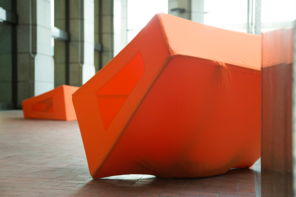 The shapes I created for the performance are abstracted versions of the Jersey barrier segments. Occupied by dancers, they animate, explore, and haunt the building's exterior, exploring and encircling it.